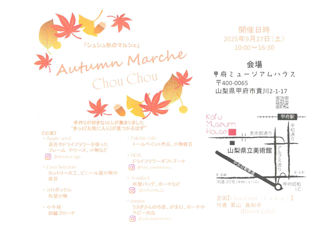 2025.9/27(土)「シュシュ秋のマルシェ」開催のお知らせ